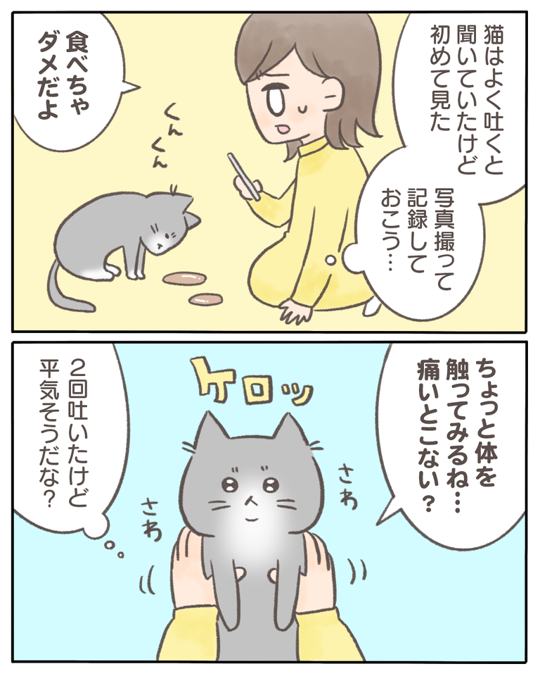 猫の『少食』の原因がわかった話【02】 2021/02/16 猫の『少食』の原因がわかった話021話から読む少食の原因が分かるまで数ヶ月かかっていて、「お尻からの出血」が一番最初の症状でした。この頃はウェットフードのみのご飯からドライフードに切り替えた時期になります。1日60gのご飯をあげるとするとそのうちの20gを残してし ... 猫の『少食』の原因がわかった話021話から読む少食の原因が分かるまで数ヶ月かかっていて、「お尻からの出血」が一番最初の症状でした。この頃はウェットフードのみのご飯からドライフードに切り替えた時期になります。1日60gのご飯をあげるとするとそのうちの20gを残してしまう〜といった感じでした。出血自体は少量で、猫砂や便に鮮血が数滴ついていて驚きました。病院で、お尻から出血した時は先生の指を入れるんだけど〜とお話を聞いた時はめちゃくちゃびっくりしました。つづきはこちら ◯読者登録はこちら◯◯メインのブログ◯◯電子書籍◯続きを読む タグ :#猫の『少食』の原因がわかった話 続きを読む
