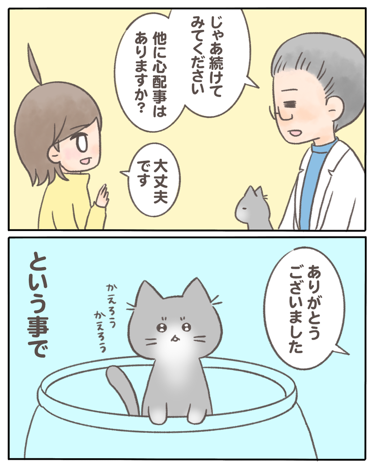 猫の『少食』の原因がわかった話【04】 2021/02/20 猫の『少食』の原因がわかった話04 1話から読む前の話はこちら 血便事件から2ヶ月ほどたって、アゴにニキビが出来はじめました。お尻からの出血も完治していなかったので合わせて見てもらおうと思い病院へ。ニキビに対してはバリカンで剃る事とご飯を食べた後に拭いてあげ ... 猫の『少食』の原因がわかった話04 1話から読む前の話はこちら 血便事件から2ヶ月ほどたって、アゴにニキビが出来はじめました。お尻からの出血も完治していなかったので合わせて見てもらおうと思い病院へ。ニキビに対してはバリカンで剃る事とご飯を食べた後に拭いてあげる事を勧められました。お尻の事について触れると、様子を見てね〜と言われて、少しモヤモヤが残ってしまいました。それ以上できる事がないのは分かっていたのですが、何かアドバイスすらないの?と感じてしまいました。もちろん、病院を批判したいわけではなく私が心配性すぎて迷惑をかけていたと思います。何も知らないので何かあるたびに病院へ行っていたので…つづきはこちら ◯読者登録はこちら◯◯メインのブログ◯◯電子書籍◯ タグ :#猫の『少食』の原因がわかった話 続きを読む