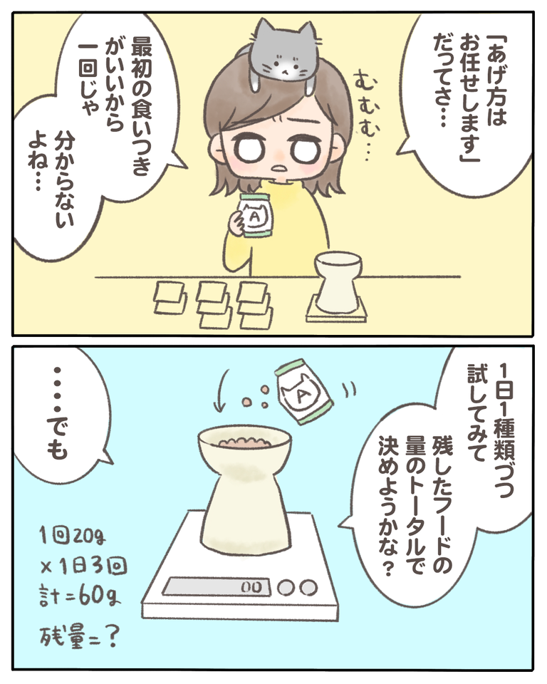 猫の『少食』の原因がわかった話【01】 2021/02/16 猫の『少食』の原因がわかった話01 ※2021年4月頃に描いたマンガです在宅で仕事をするならと思い猫を飼い始めました。猫を自分で飼うのは初めての体験です。(実家では飼っていました)動物を飼うのはとても大変!思った以上に大変!でも、何が起きてもこの子の一生を支 ... 猫の『少食』の原因がわかった話01 ※2021年4月頃に描いたマンガです在宅で仕事をするならと思い猫を飼い始めました。猫を自分で飼うのは初めての体験です。(実家では飼っていました)動物を飼うのはとても大変!思った以上に大変!でも、何が起きてもこの子の一生を支え続けると誓いを立ててお迎えしております。そんなうちの子が、かなりの少食でずっと悩んでいました。出したご飯を食べない…事はない…でも全然食べきらない…なぜ?と思って奮闘した日々を描いていこうと思います。つづきはこちら ◯読者登録はこちら◯◯メインのブログ◯◯電子書籍◯ タグ :#猫の『少食』の原因がわかった話 続きを読む