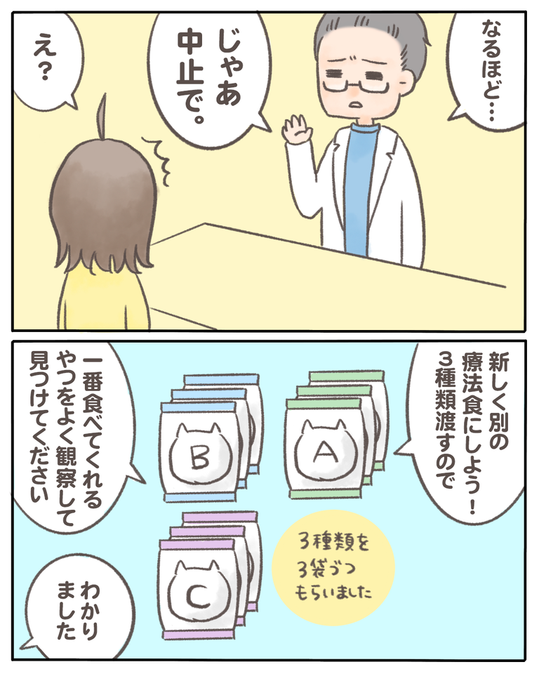 猫の『少食』の原因がわかった話【12】 2021/04/06 猫の『少食』の原因がわかった話12 1話から読む前の話はこちら 猫はよく吐くと知ってはいましたが、うちの子が吐いたことがなくすごくびっくりしました。それよりも冷静に対応しなければ!という気持ちが強かったので、私一人で病院へ向かう事に。病院では皮膚ケアのフー ... 猫の『少食』の原因がわかった話12 1話から読む前の話はこちら 猫はよく吐くと知ってはいましたが、うちの子が吐いたことがなくすごくびっくりしました。それよりも冷静に対応しなければ!という気持ちが強かったので、私一人で病院へ向かう事に。病院では皮膚ケアのフードをやめて、違うものを3種類試すよう言われました。ちなみにこれはロイヤルカナンの療法食でした。(皮膚ケアは何だったか忘れた)つづきはこちら ◯読者登録はこちら◯◯メインのブログ◯◯電子書籍◯ タグ :#猫の『少食』の原因がわかった話 続きを読む